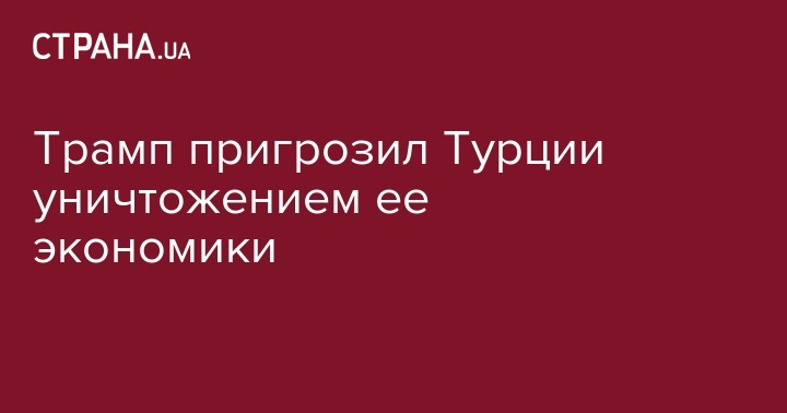 Президент США Дональд Трамп пригрозил Турции уничтожением экономики в случае, если во время военной операции на территории Сирии она начнет уничтожать курдов. Об этом сообщает Reuters.