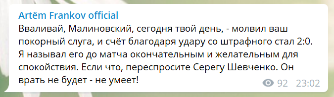 83 Вновь овации наставнику сборной Украины Андрею Шевченко на стадионе. Тем временем игроки Литвы чуть не закатили мяч в ворота. Но именно что, чуть.