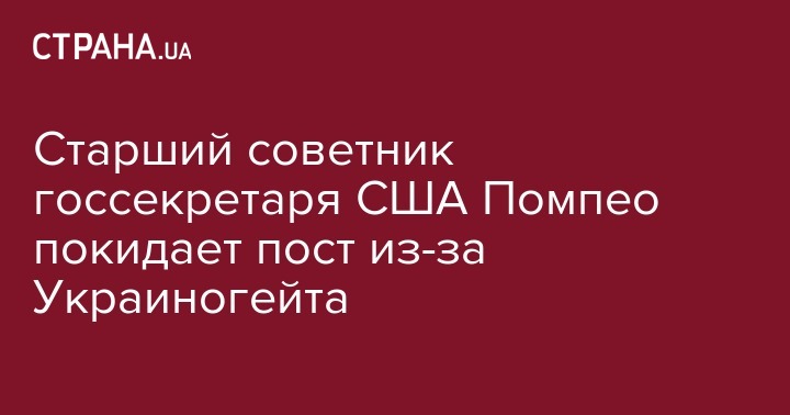 Старший советник госсекретаря США Помпео покидает пост из-за Украиногейта