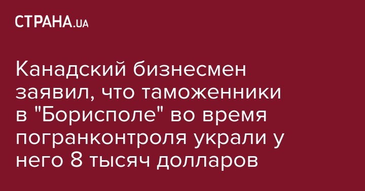 Канадский бизнесмен заявил, что таможенники в "Борисполе" во время погранконтроля украли у него 8 тысяч долларов