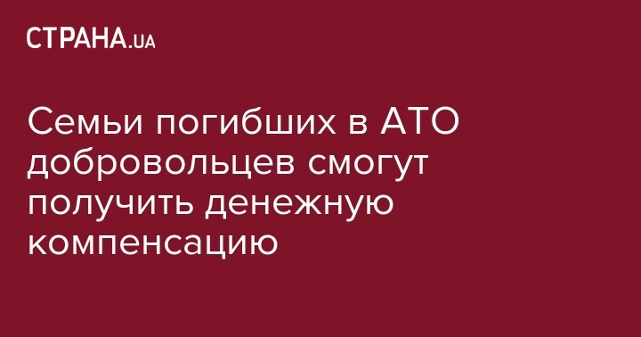 Семьи добровольцев погибших в зоне проведения АТО будут получать денежную компенсацию в размере 500 прожитоных минимумов. Об этом сообщил на своей странице в Facebook известный волонтер и сотрудник Минобороны Алексей Липириди.