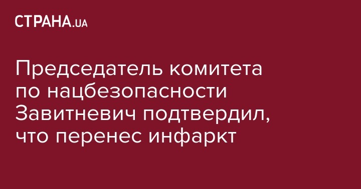 Председатель комитета по нацбезопасности Завитневич подтвердил, что перенес инфаркт