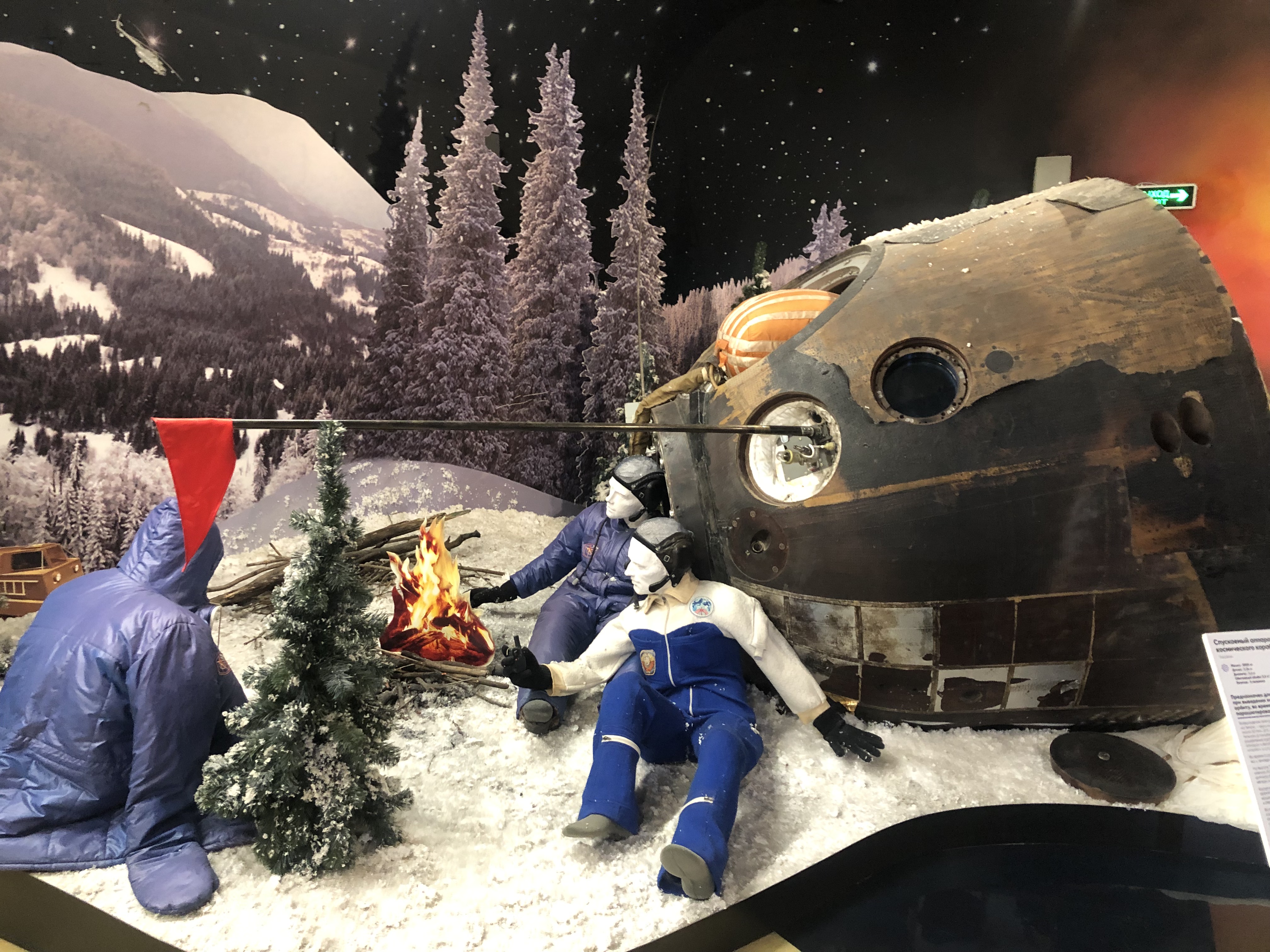 Леонов и Беляев после возвращения "Восхода-2". Экспозиция Музея Космонавтики. Фото: Страна