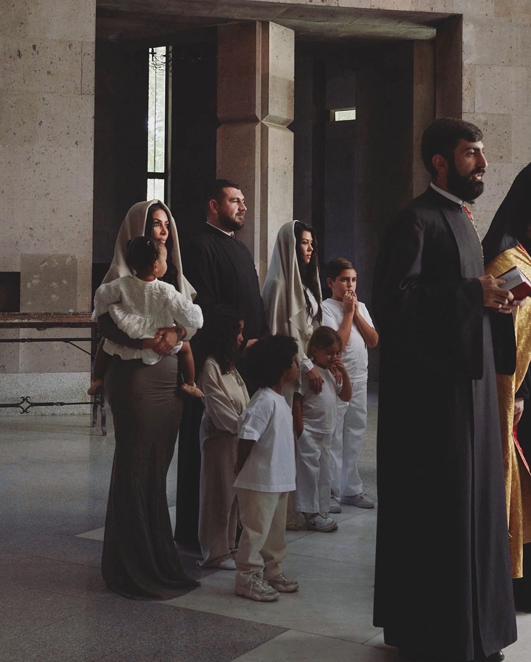 Крестным отцом семьи Кардашьян стал священнослужитель Наири Срапионян, которому 27 лет. Он узнал о приезде знаменитостей на крещение за несколько часов до церемонии.