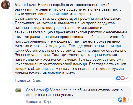 Некоторые пользователи отметили, что это может работать в развитых странах с высоким уровнем медицины, паллиативной и хосписной помощи, то есть вариант не для Украины.