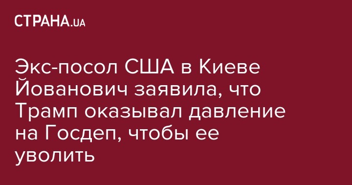 Экс-посол США в Украине Мари Йованович во время слушаний в Конгрессе заявила, что глава страны Дональд Трамп оказывал давление на Госдеп, чтобы добиться ее смещения с поста. Об этом сообщает Associated Press.