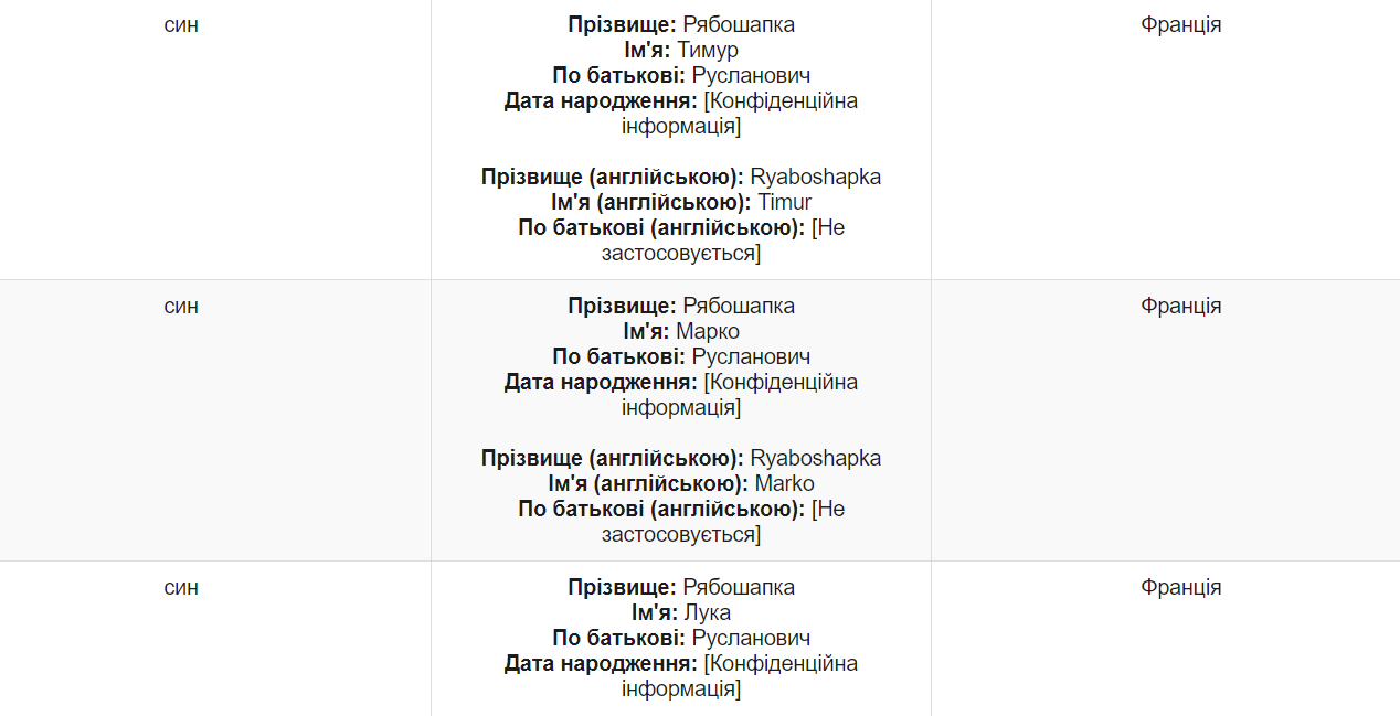Сообщается, что Вышгородский райсуд Киевской области рассматривал иск Георгия Рябошапки к Руслану Рябошапке и Людмиле Рябошапке в 2015 году.