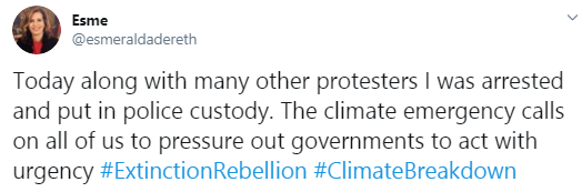 При этом она выразила поддержку экодвижению Extinction Rebellion, которое проводит по всему миру демонстрации в связи с бездействием по вопросам климата.