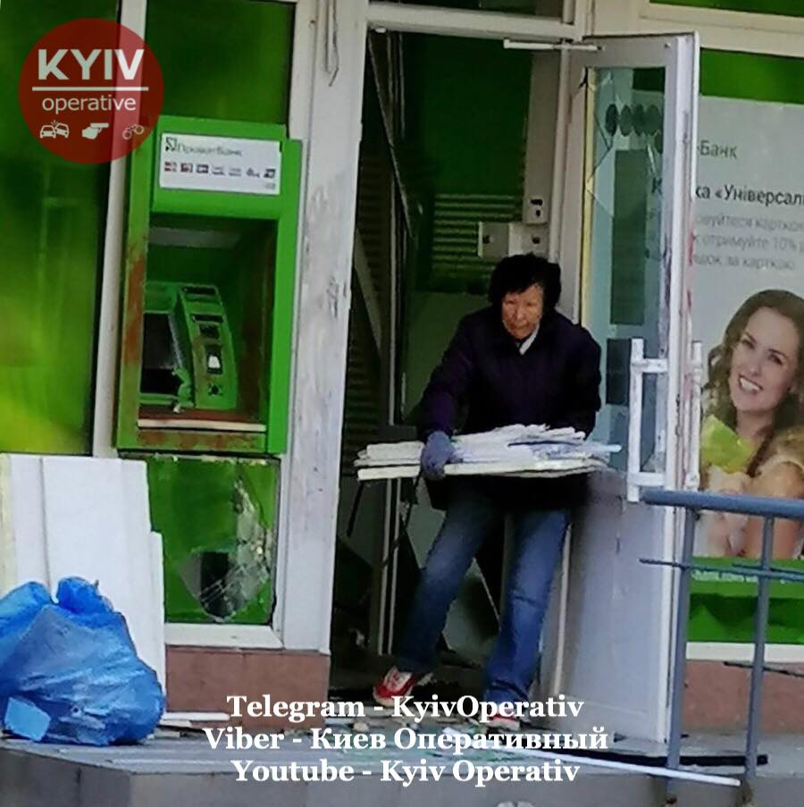 В Киеве грабители взорвали банкомат Приватбанка, но не успели забрать деньги. Фото