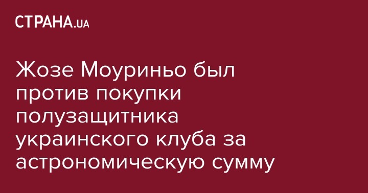 Жозе Моуриньо был против покупки полузащитника украинского клуба за астрономическую сумму