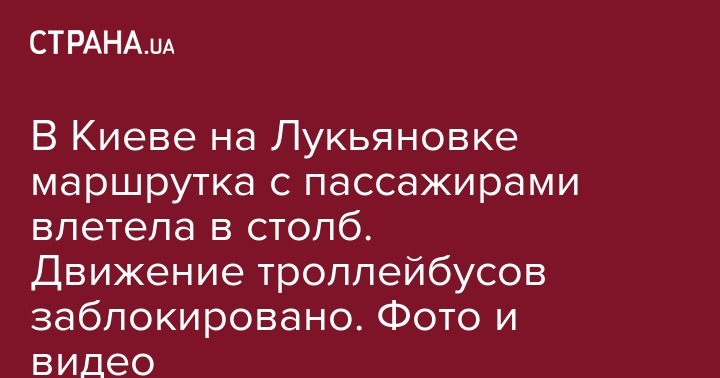 В Киеве на Лукьяновке маршрутка с пассажирами влетела в столб. Движение троллейбусов заблокировано. Фото и видео