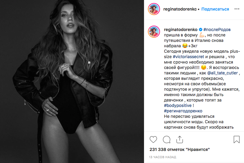Известная телеведущая, звезда шоу "Орел и решка" Регина Тодоренко опубликовала фото в черном боди, показав идеальную фигуру спустя год после родов.