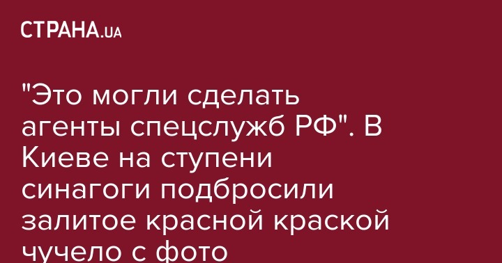 На лестницу синагоги им. Бродского в Киеве 14 октября неизвестные в камуфляже бросили чучело с фотографией Коломойского вместо лица, залитое красной краской. Об этом сообщил на Facebook бывший народный депутат Игорь Мосийчук.