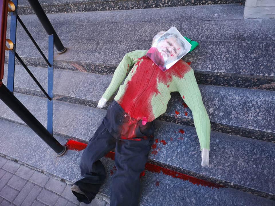 Чучело принесли к синагоге днем, примерно в 15:30. Мосийчук назвал выходку идиотской и предположил, что это может быть провокация Кремля.