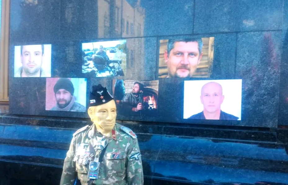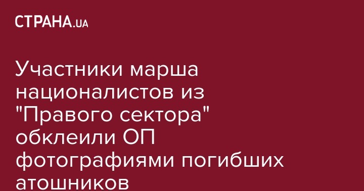 Около 15:30 участники марша в честь Украинской повстанческой армии, начавшегося в парке Шевченко, подошли к Офису президента на улице Банковой. Участники колонны "Правого сектора" достали фотографии погибших в АТО и прикрепили их к парадному входу в Офис.