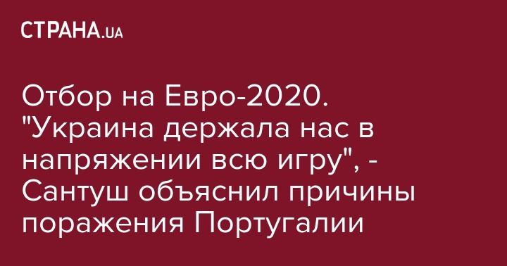 Отбор на Евро-2020. "Украина держала нас в напряжении всю игру", - Сантуш объяснил причины поражения Португалии