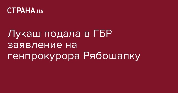 Экс-министр юстиции Елена Лукаш подала в Госбюро расследований заявление на действующего генпрокурора Руслана Рябошапку. Об этом она сама заявила журналистам, передает "112 Украина"