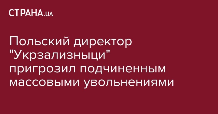 Новый генеральный директор "Укрзализныци" Войцех Балчун обещает на предприятии масштабные кадровые чистки и раскрытие действующих коррупционных схем. Об этом он написал на своей странице в социальной сети Facebook.