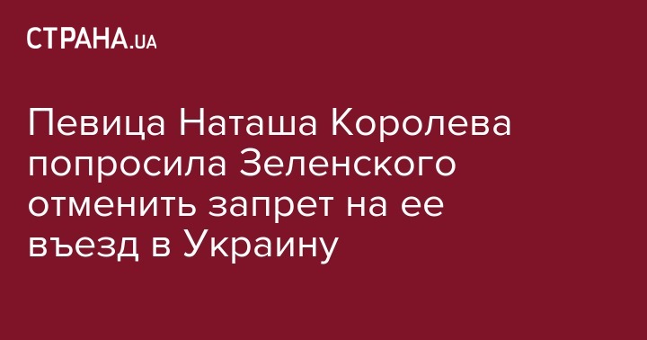 Певица Наталья Королева, которой в октябре 2016 года СБУ запретила въезд в Украину на пять лет, обратилась к президенту Владимиру Зеленскому с просьбой отменить запрет. Об этом она сообщила в своем Instagram.
