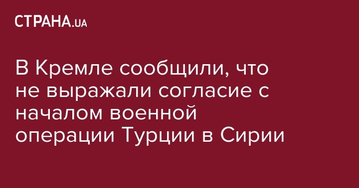 В Кремле сообщили, что не выражали согласие с началом военной операции Турции в Сирии
