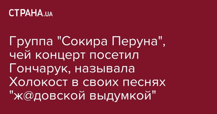 Группа "Сокира Перуна", чей концерт посетил Гончарук, называла Холокост в своих песнях "ж@довской выдумкой"