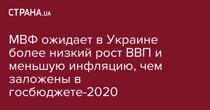 Международный валютный фонд (МВФ) в 2020 году ожидает более низкого роста ВВП и уровня инфляции в Украине, чем заложено в госбюджете. Об этом свидетельствует обнародованный на сайте фонда макроэкономический прогноз.