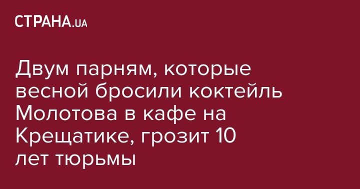 Двум парням, которые весной бросили коктейль Молотова в кафе на Крещатике, грозит 10 лет тюрьмы