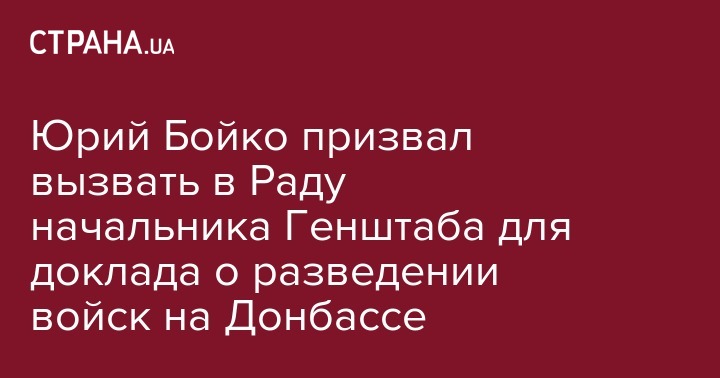 Сопредседатель фракции Оппозиционной платформы - За жизнь Юрий Бойко призвал заслушать доклад начальника Генштаба Вооруженных сил Украины Руслана Хомчака в парламенте по поводу разведения войск на Донбассе.