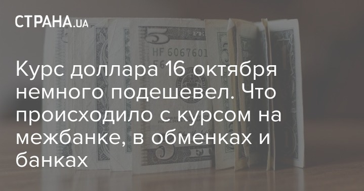 16 октября курс доллара в обменках незначительно подешевел: покупка - 24,80 грн, продажа - 24,85 грн. Межбанк закрылся удешевлением на 3 копейки: 24,74 грн - покупка и 24,78 грн - продажа. В банках вечером доллар покупают от 24,40 до 24,84 грн, продают - от 24,83 до 25,45 грн.
