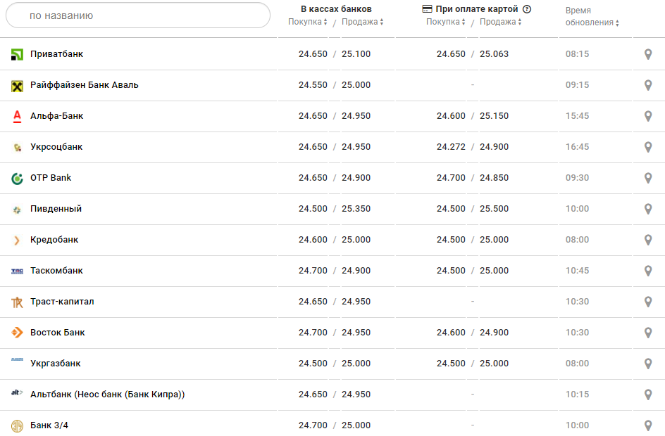 В банках курс доллара с утра был такой: покупка - от 24,30 до 24,81 грн, продажа - от 24,75 до 25,40 грн.