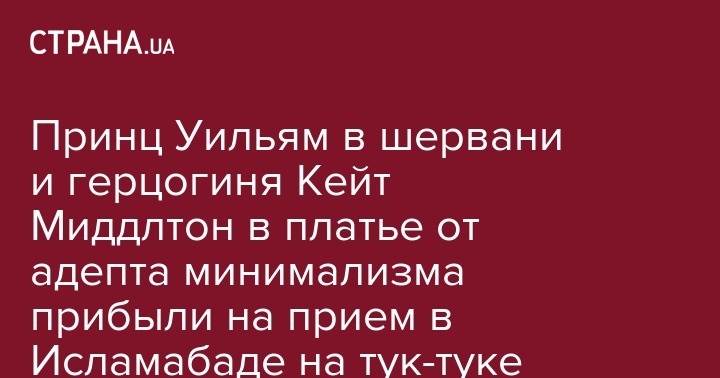 Принц Уильям в шервани и герцогиня Кейт Миддлтон в платье от адепта минимализма прибыли на прием в Исламабаде на тук-туке