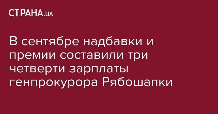 Зарплата генпрокурора Руслана Рябошапки в сентябре составила 131 728 гривен. Об этом пишут "Украинские Новости"