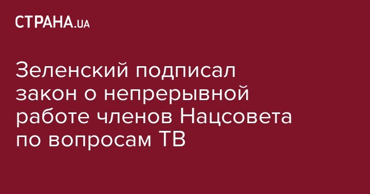 Президент Украины Владимир Зеленский подписал закон о введении процедуры продления полномочий члена Нацсовета по вопросам ТВ после прекращения его полномочий Радой, а также назначении парламентом членов Нацсовета одновременно на все вакантные должности. Информация об этом содержится на сайте парламента.