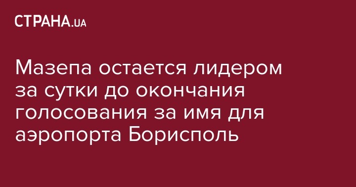 Как сообщала "Страна", 12 июля "Иван Мазепа" лидировал в голосовании за новое название аэропорта в Борисполе. Гетман Иван Мазепа обогнал по количеству голосов авиаконструктора Игоря Сикорского, который был предыдущим лидером голосования. У Мазепы более 10,5 тысяч голосов. А у Игоря Сикорского - чуть более 8 тысяч. На третьем месте - Казимир Малевич, у которого чуть более 7,2 тысяч голосов.
