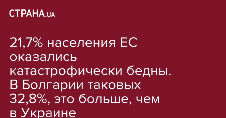Как пояснили в Евростате, проживание за гранью бедности или социальной изоляции подразумевает по крайней мере одно из трех условий: низкий доход, серьезные материальные затруднения или проживание в домохозяйствах с низкой занятостью. В Болгарии процент таких граждан составил 32,8%.