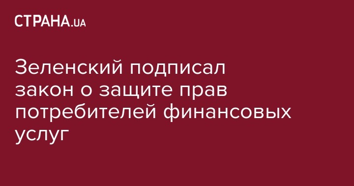 Президент Украины Владимир Зеленский подписал закон о внесении изменений в некоторые законодательные акты Украины относительно защиты прав потребителей финансовых услуг. Об этом говорится на официальном портале Верховной Рады.