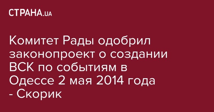 Регламентный комитет Верховной Рады поддержал проект решения №2198, поданный Оппозиционной платформой - За жизнь, о создании временной следственной комиссии (ВСК) по расследованию событий 2-го мая 2014 года в Одессе. Об этом сообщил нардеп из ОПЗЖ Николай Скорик в Facebook.