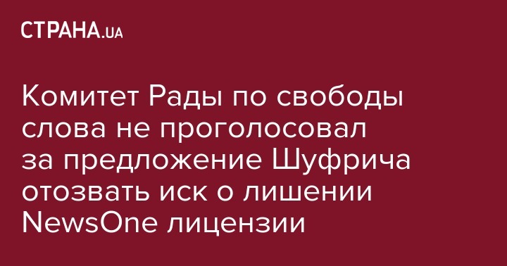 В парламентском комитете по вопросам свободы слова отклонили предложение главы органа, депутата от "Оппозиционной платформы – За жизнь" Нестора Шуфрича обратиться к Нацсовету по вопросам телевидения и радиовещания отозвать иск в суд относительно аннулирования лицензии телеканала NewsOne.