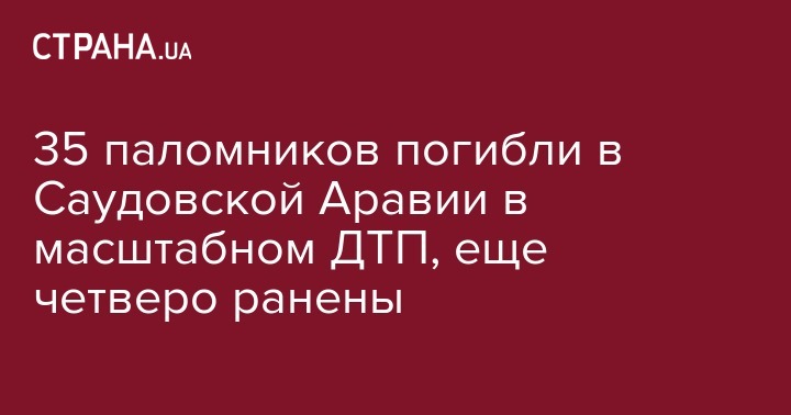 В Саудовской Аравии произошло страшное ДТП. Здесь столкнулись автобус, перевозивший паломников, совершающих хадж в священный город Медину, и грузовик. В столкновении погибло по меньшей мере 35 человек, еще четверо серьезно пострадали.