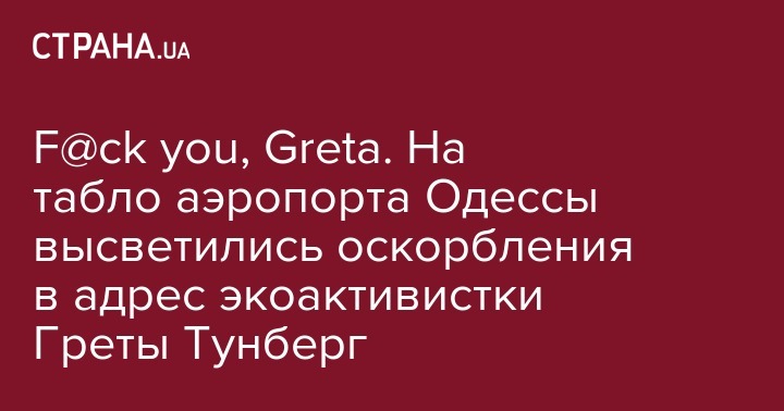 16 октября казус произошел в аэропорту Одессы. На информационном табло вдруг высветилась оскорбительная надпись в адрес 16-летней шведской экоактивистки Греты Тунберг. Об этом сообщил Telegram-канал "Подслушано Одесса".