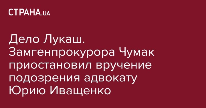 Дело Лукаш. Замгенпрокурора Чумак приостановил вручение подозрения адвокату Юрию Иващенко