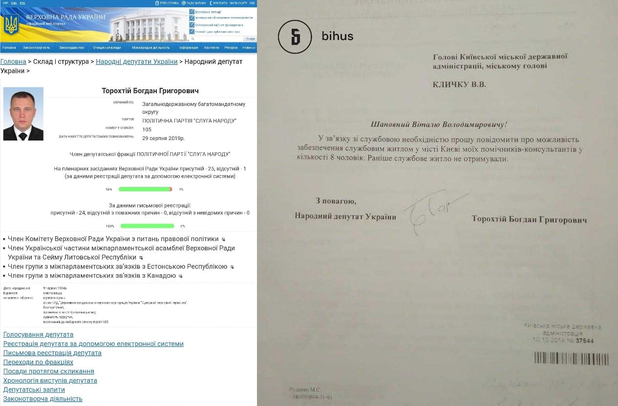 Народный депутат от партии "Слуга народа" Богдан Торохтий попросил у мэра Киева Виталия Кличко 8 квартир в столице для своих помощников. Об этом сообщил журналист Денис Бигус на своей странице в Facebook.