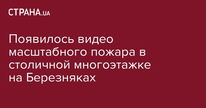 Появилось видео масштабного пожара в столичной многоэтажке на Березняках