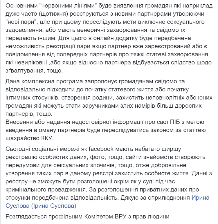 По его словам, целью реестра является побуждение, поддержка граждан в создании и развитии здоровой семьи, безопасной интимной жизни.