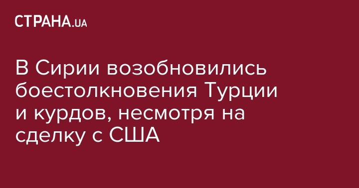 Турецкая армия возобновили в пятницу, 18 октября, атаки на занятый курдами город Рас-эль-Айн на северо-востоке Сирии, несмотря на соглашение о прекращении огня, заключенное с США. Об этом передает телеканал Al Mayadeen со ссылкой на курдские источники.