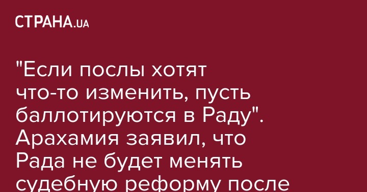 "Если послы хотят что-то изменить, пусть баллотируются в Раду". Арахамия заявил, что Рада не будет менять судебную реформу после критики со стороны Запада