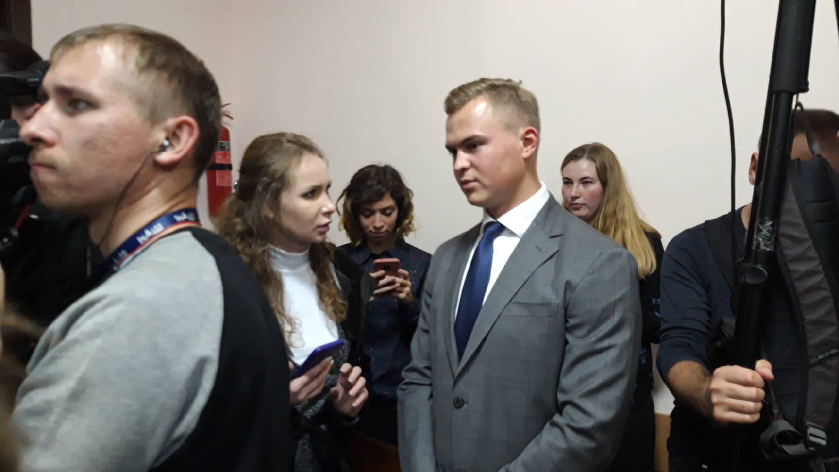12:11 Началось утреннее заседание суда. Гладковскому разрешили выйти из стеклянного бокса и сесть рядом с адвокатами.