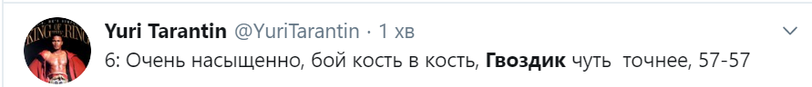 Под самую концовку первого раунда Гвоздик упал на ринг из-за приема из дзюдо Артура Бетербиева. А рефери решил отчитывать нокдаун. Естественно Александр сразу продолжил бой. После протестов публики и тренера нокдаун отменен
