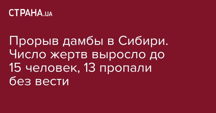 Прорыв дамбы в Сибири. Число жертв выросло до 15 человек, 13 пропали без вести