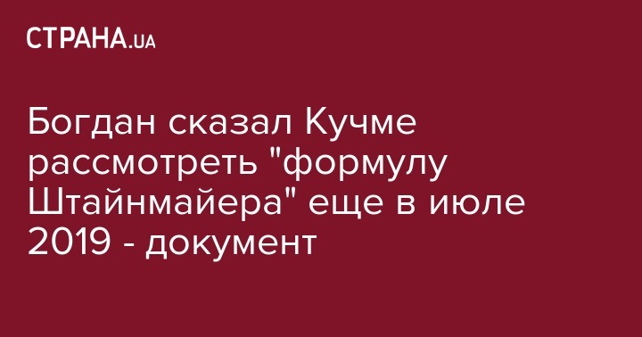 Богдан сказал Кучме рассмотреть "формулу Штайнмайера" еще в июле 2019 - документ